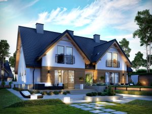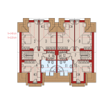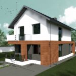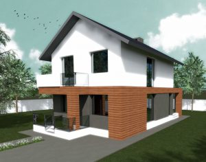 Proiectul pe care vi-l propunem este un duplex format din două case identice fiecare cu o suprafață utilă de 111.49 mp. Aceste case cu câte trei dormitoare pot reprezenta proiectul ideal pentru două familii care au moștenit o parcela de teren mai îngustă și care doresc să locuiască împreună. Casa tip duplex este formată din parter și etaj situat la mansardă și are o arhitectură simplă, fațadele fiind albe, iar cea din spatele casei este decorată cu lemn.