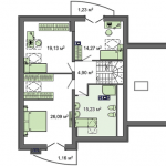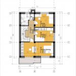 Ideal dacă vă doriți o casă mică, dar încăpătoare, are o arhitectură armonioasă ce se reflectă în compartimentarea sa functională. Acesta este un proiect de casă pentru o familie numeroasă cu un living cu zona de dining pentru a lua masă alături de cei dragi, 3 dormitoare pentru ca cei mici să aibă propriul lor spațiu, două băi și o cameră generoasă pentru depozitare. Căminul din categoria caselor cu etaj, este destinat unui teren de cel putin de cel putin 350 mp, cu un front stradal de minim 13,5 m.