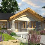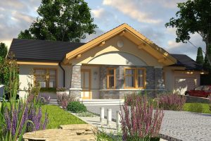 Această casă cu arhitectură clasică ne aduce aminte de vechile case boierești cu multe ferestre și verande mari. Fațada de culoare albă se îmbină armonios cu finisajele din piatră și cu ferestrele din lemn stratificat. Având în vedere că are doar parter, această casă este perfectă pentru familiile cu copii mici sau pentru persoanele în vârstă care au dificultăți de deplasare.